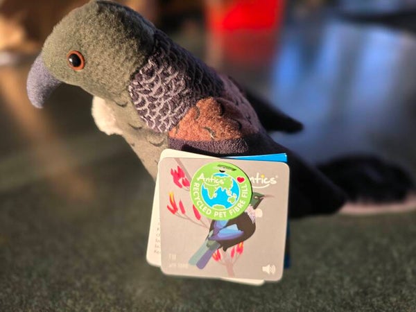 This cuddly soft toy is one of the sound bird range of New Zealands native birds. Standing at 15cm in height, 'TUI' loves to sing and makes real tui noise when squeezed.